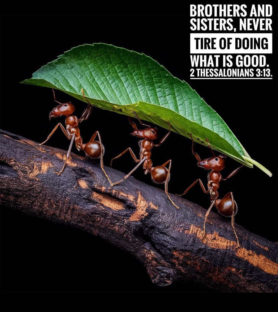 Ants are small and not strong, yet they are exceedingly wise. They provide their food in summer. They neither have a chief nor a ruler, yet they are united. They work tirelessly and stores its provisions in summer and gathers its food at harvest.