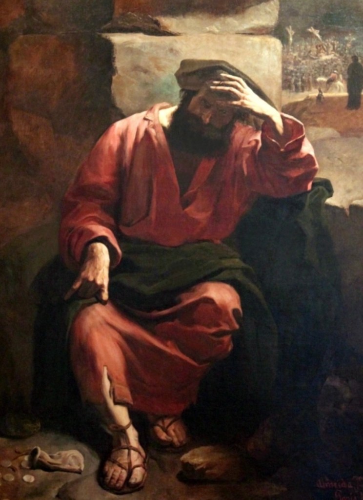 The wind blows gently. There is a subtle silence. Floral fragrance around. The sun has almost set and dusk has begun. Judas is alone. The tempter is by his side. His weakness is known. He hears the sweet gentle voice. He lends his ears and the devil moves into him and dwells in him.